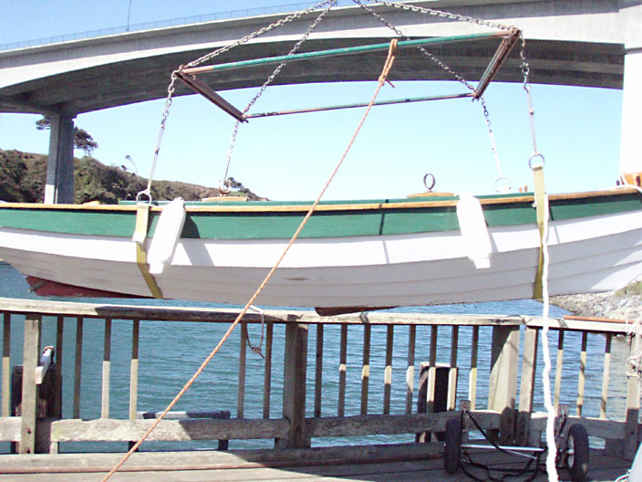 | Towed the boat up 101 to Hwy 20 to Ft. Bragg, and sling-launched her for the first time.